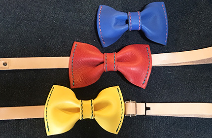 蝶ネクタイの革の色、ステッチの糸の色をお選びいただけます。