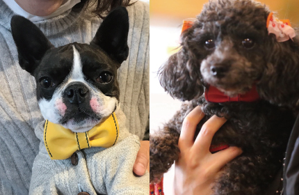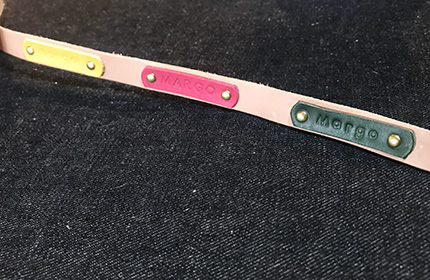 蝶ネクタイには名前の刻印をサービスで取付致します。納期は約1週間です。送料別途でお送り出来ます。商品を取りに来て頂ける方にはドリンク無料チケットをお渡ししております。人にも犬にもどちらもお使いいただけます。