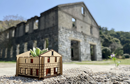 戦時遺構を手のひらサイズで再現した植物カバーです。