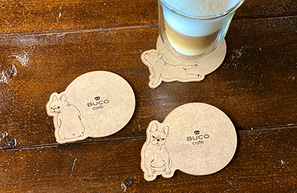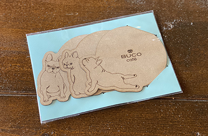 看板犬のフレンチブルドッグ「マーゴ」をモデルにしたコースターです。