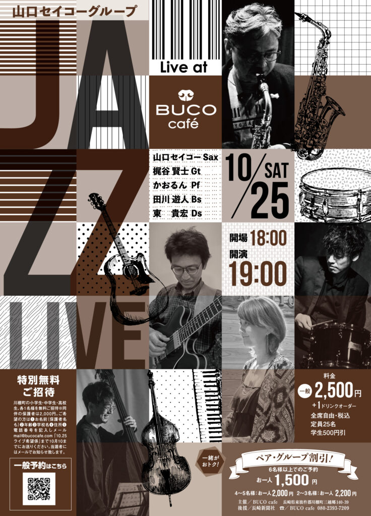 いつもBUCO caféのジャズライブにご来場いただきありがとうございます。