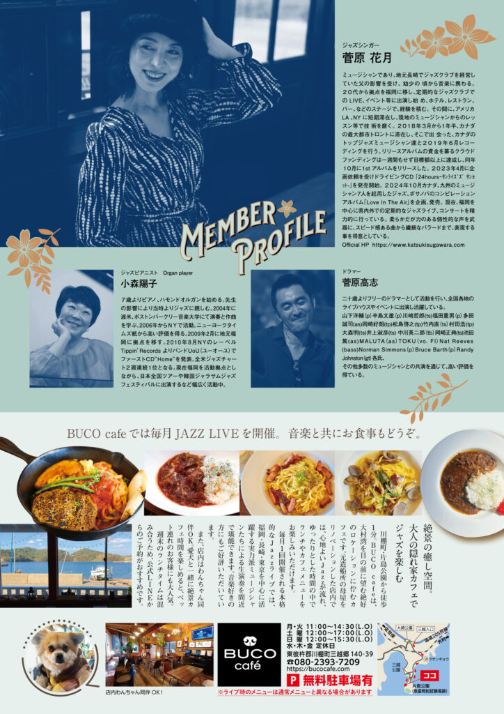今月のジャズライブは福岡から素敵なジャズボーカリスト菅原花月さんのトリオをお迎えしてのライブとなります。